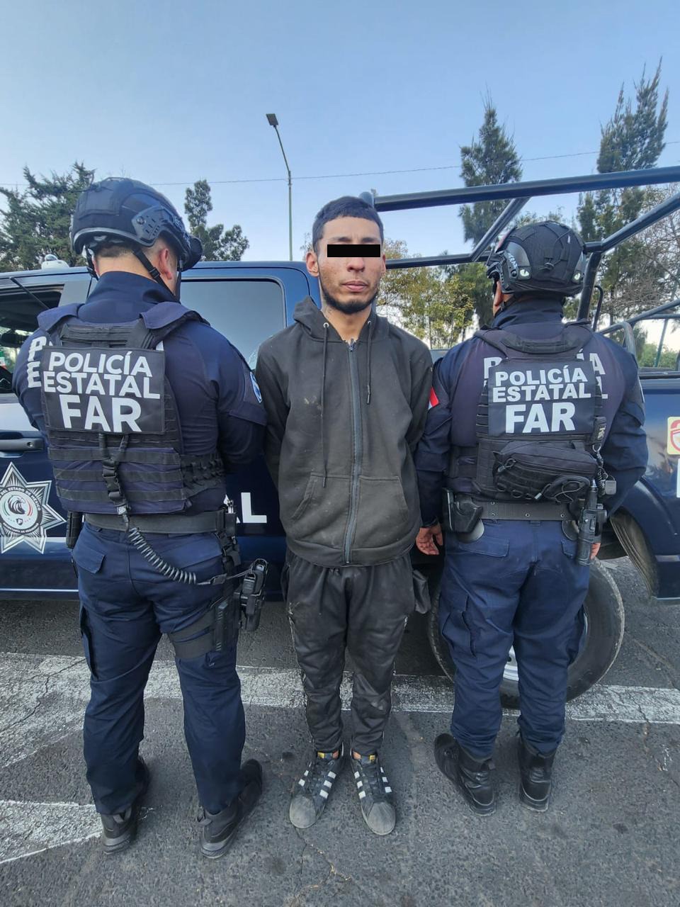 Elementos de la Secretaría de Seguridad del Estado de México (SSEM) detuvieron a un hombre que alteraba el orden público y que era objetivo prioritario por ser posible responsable de robo con violencia a diversos negocios de la zona.