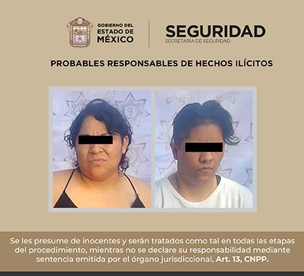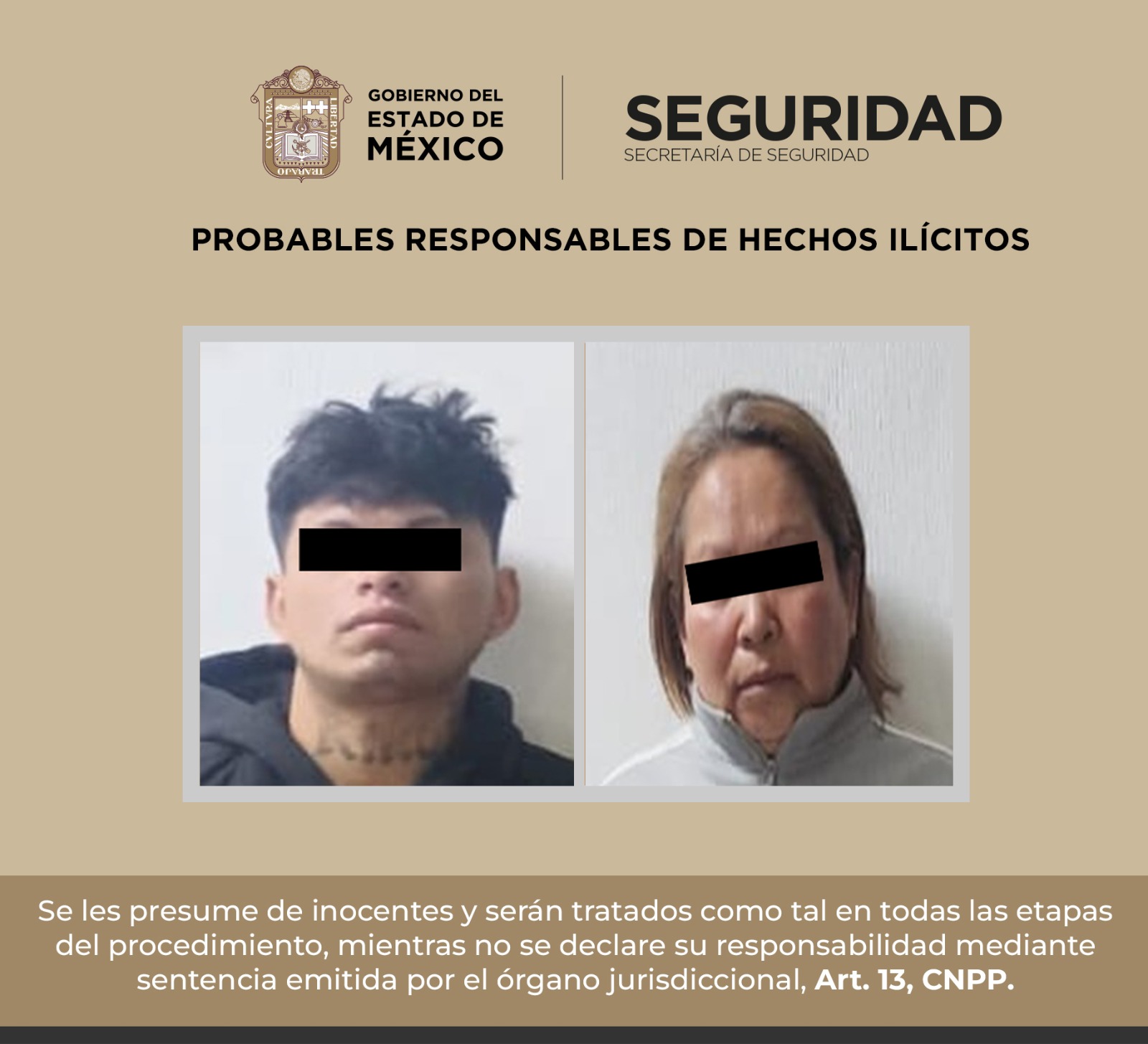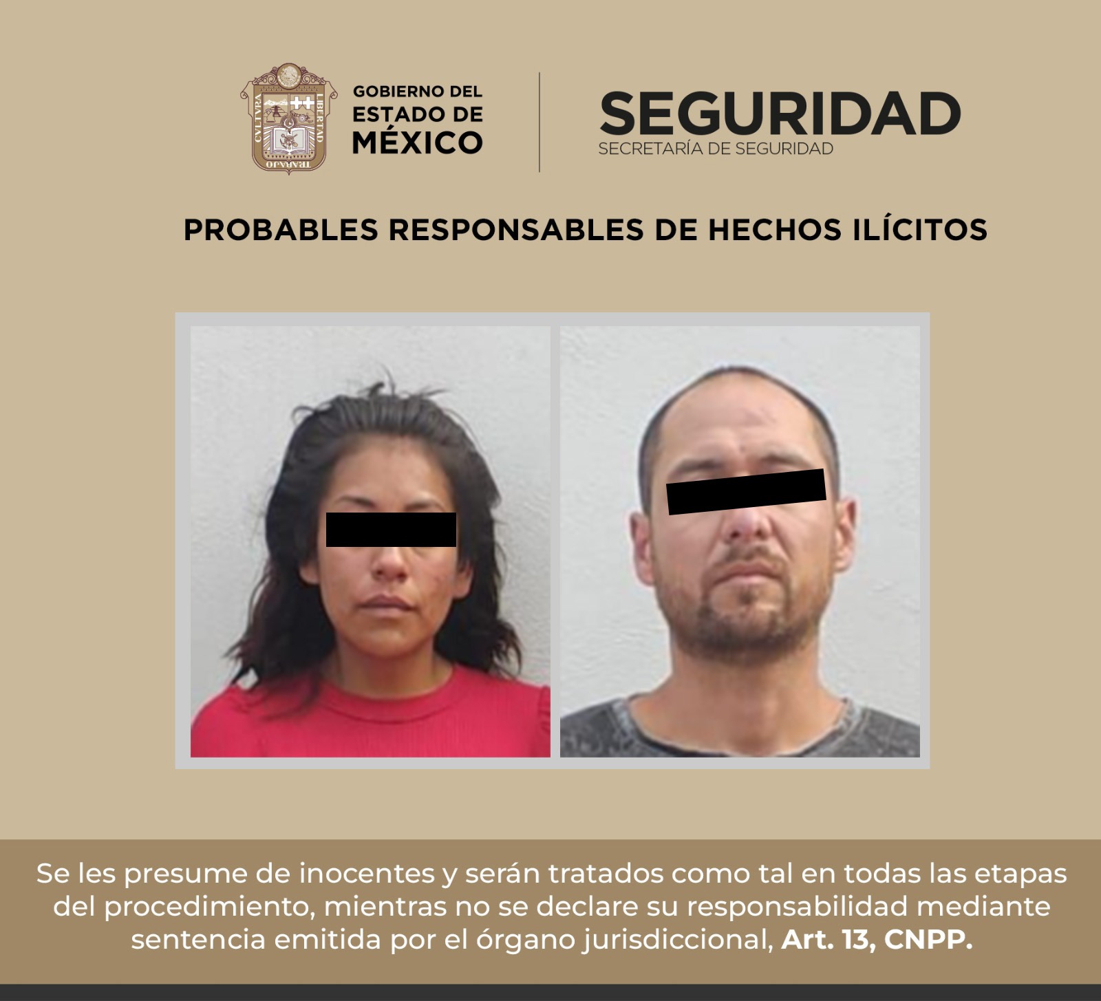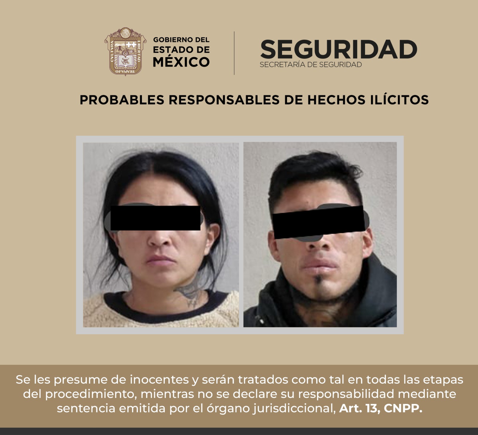 Como resultado de recorridos de vigilancia y prevención del delito, elementos de la Secretaría de Seguridad del Estado de México (SSEM) detuvieron a un hombre y una mujer, probables responsables de la posesión de un arma de fuego y encubrimiento por receptación.