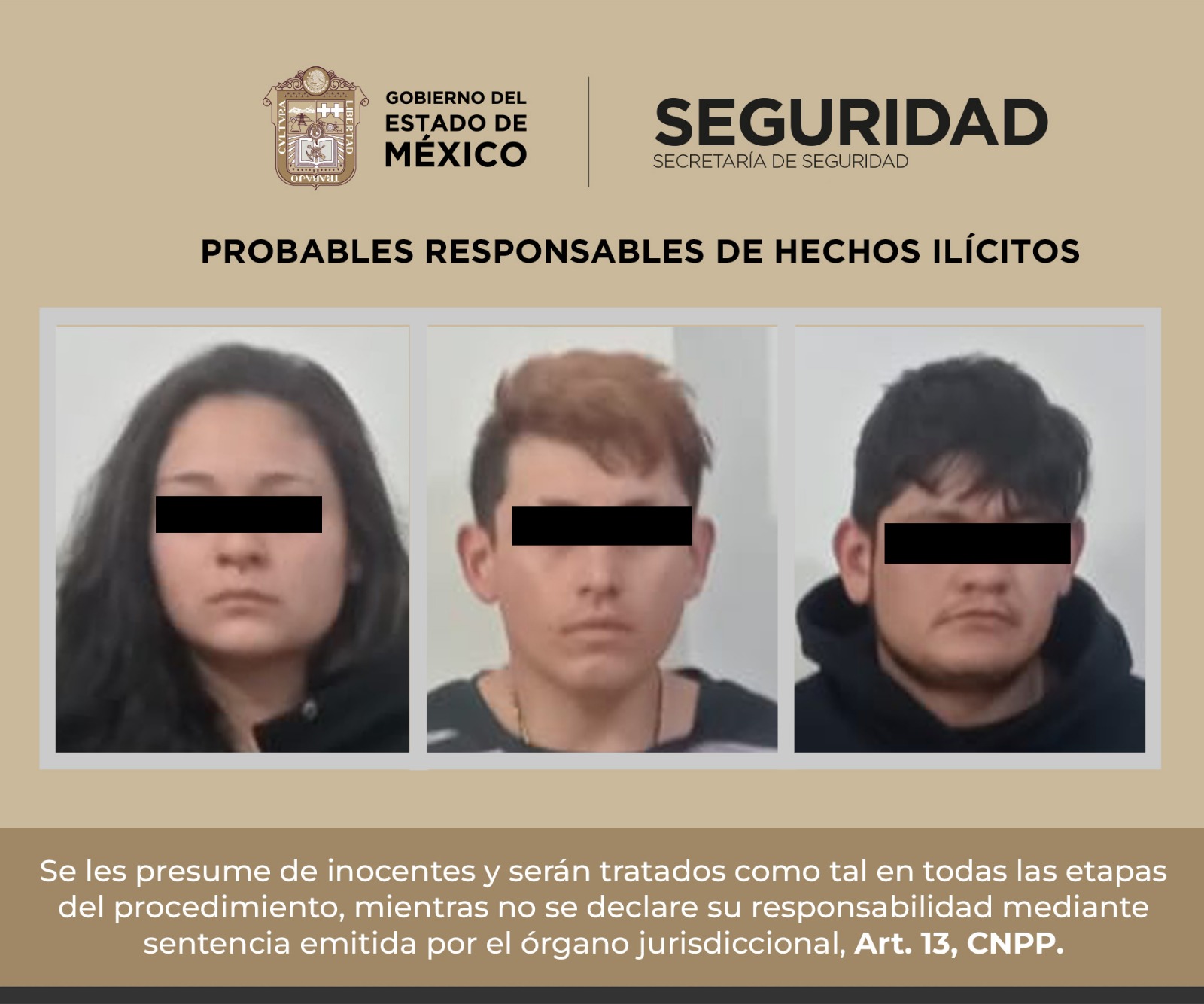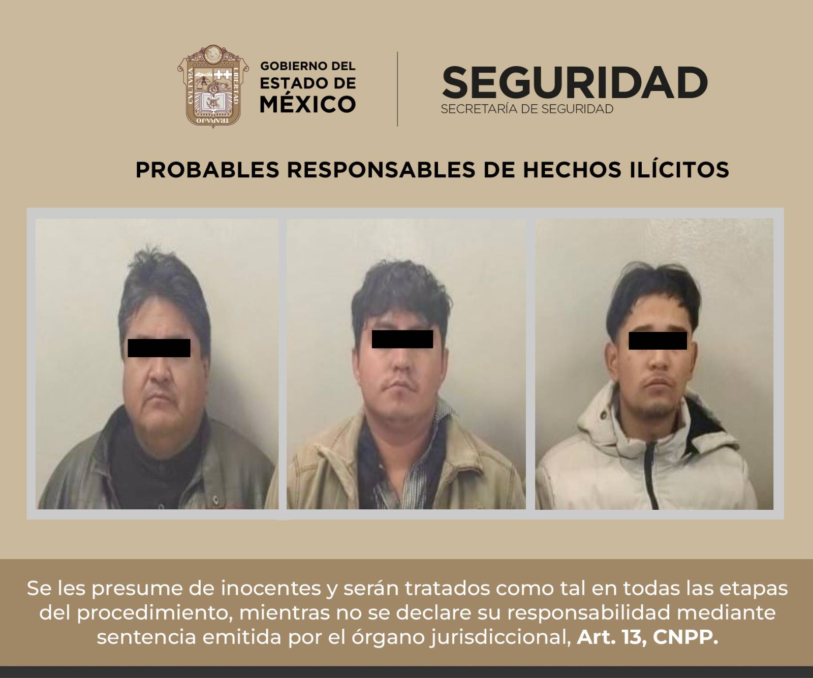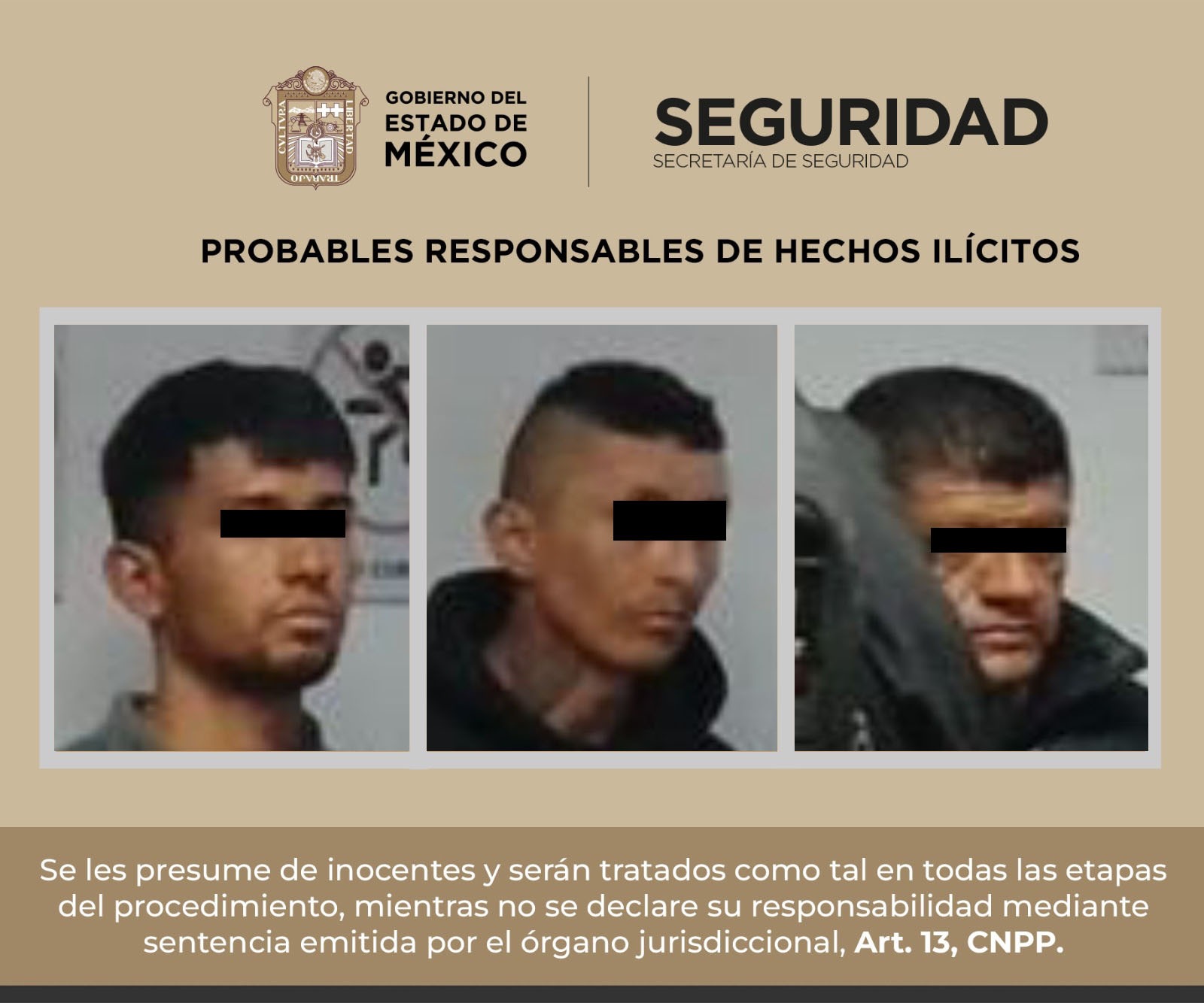 La coordinación entre las fuerzas del orden permitió que elementos de la Secretaría de Seguridad del Estado de México (SSEM), en conjunto con la Policía Municipal, detuvieran a tres masculinos probables responsables del delito de robo con violencia a un establecimiento comercial.