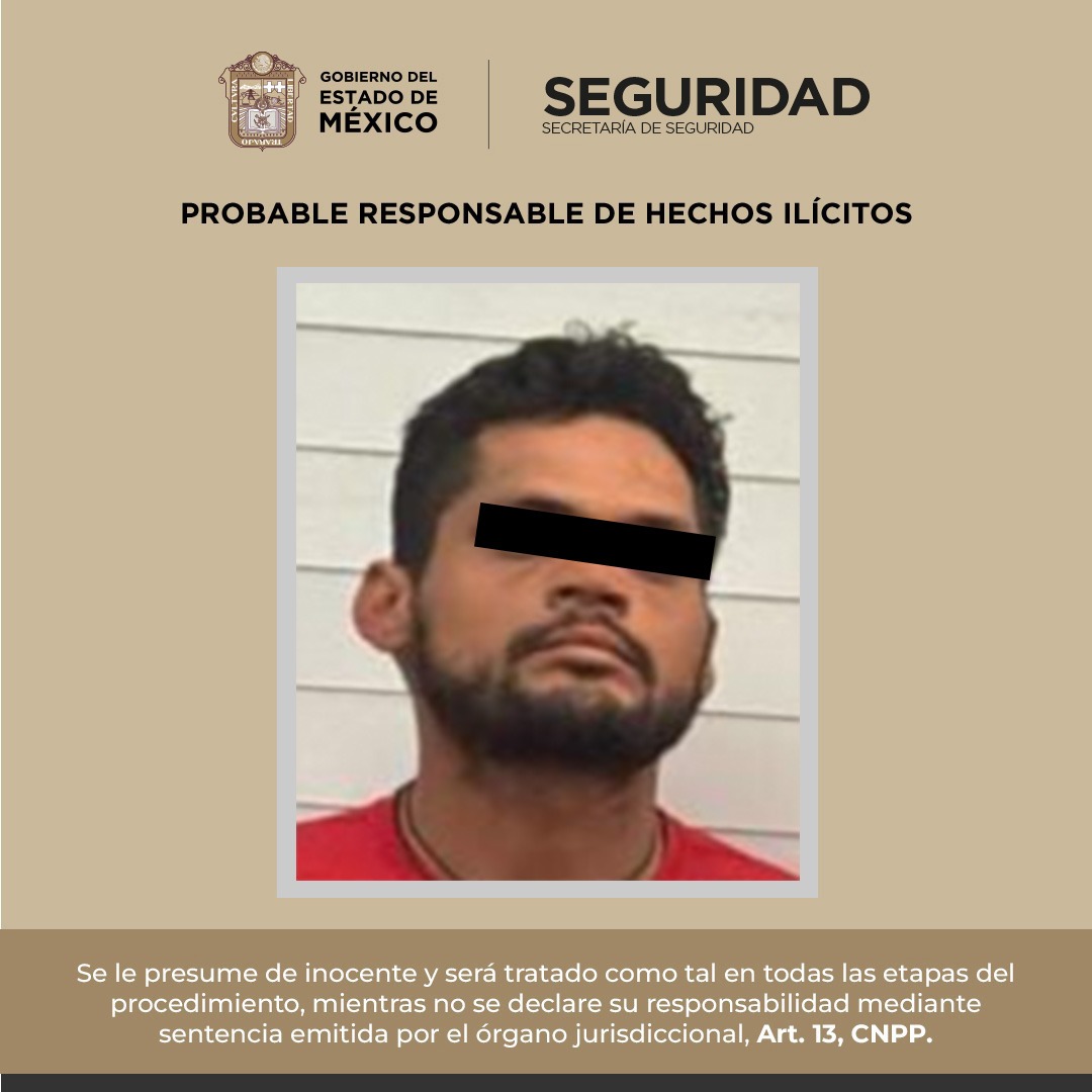 Acciones de proximidad social por parte de elementos de la Secretaría de Seguridad del Estado de México (SSEM), culminaron en la detención de un hombre probable responsable de operaciones con recursos de procedencia ilícita y ataques a las vías de comunicación.