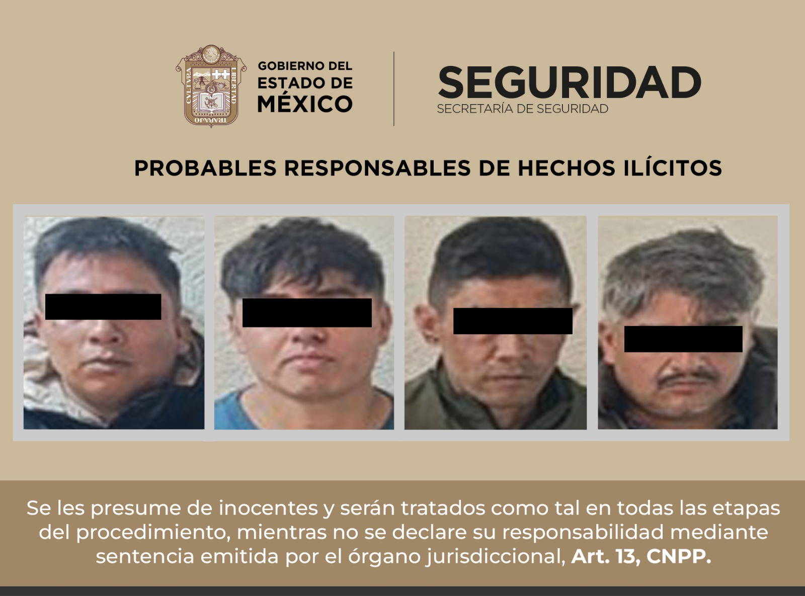 Una oportuna denuncia ciudadana derivó en la detención de cuatro hombres probables responsables de robo con violencia a transeúnte, por parte de elementos de la Secretaría de Seguridad del Estado de México (SSEM).